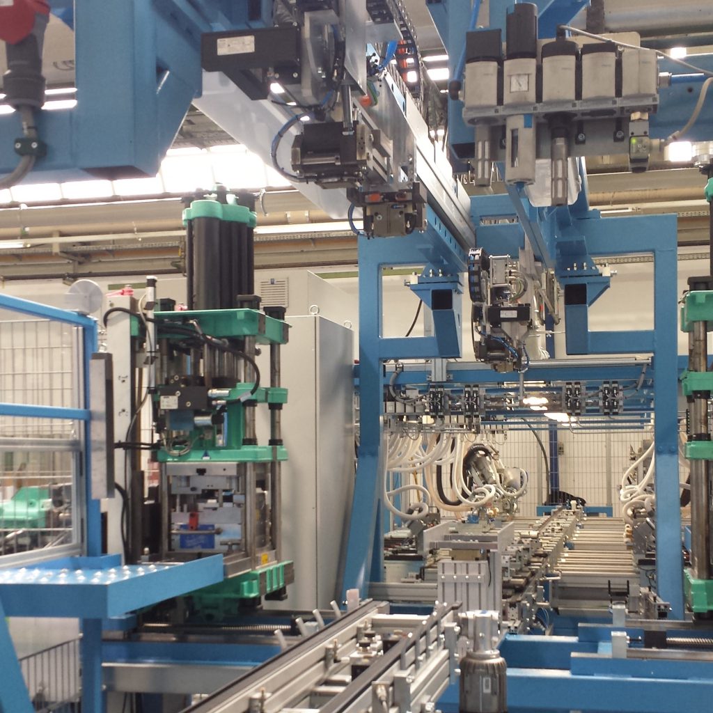 • Handling Bauteilklemmungen über 3 Greifer und Zufuhr in Spritzgussmaschine über 2 Spritgusshandlings